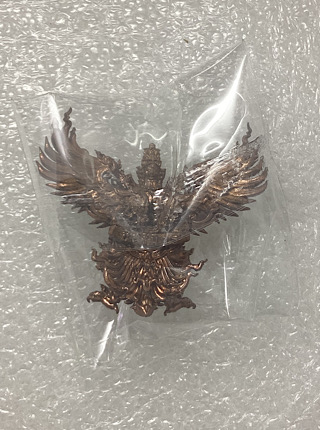 เคาะเดียวแดง 100 พญาครุฑทรงฤทธิ์ ชนะมาร วัดครุฑธาราม พระนครศรีอยุธยา พิมพ์เล็ก สูง 3.2 ซ.ม. เนื้อทองแดงขัดยาดำ (แจกในพิธี) |