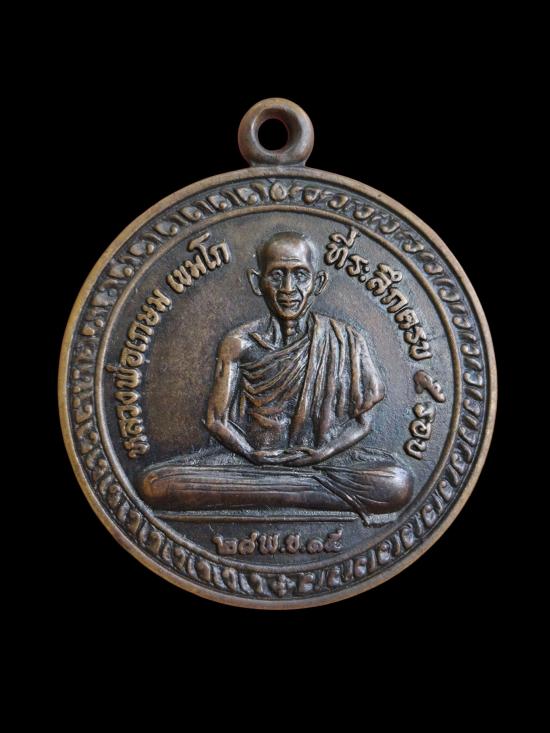 เหรียญหลวงพ่อเกษม รุ่นครบ 5 รอบ เนื้อทองแดง ปี 2515 พร้อมบัตรรับรอง