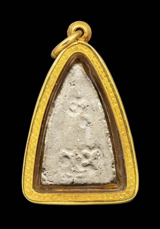 พระพุทโธน้อย แม่ชีบุญเรือน วัดอาวุธฯ พิมพ์เล็กหลังยันต์พุทโธ เนื้อผง ปี 2494 กรุงเทพฯ เลี่ยมทองหนา