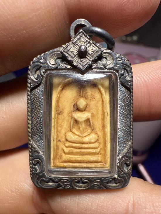 สมเด็จงาเก่าเลี่ยมเงินหนาไม่ทราบที่มีรอยจาร เก่าได้อายุ