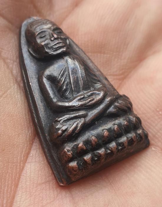 วัดใจพระหลวงปู่ทวด วัดช้างให้ พิมพ์เตารีดหลังตัวหนังสือ ((หลัง 10 ขีด)) เนื้อทองแดง ปี 2524 |
