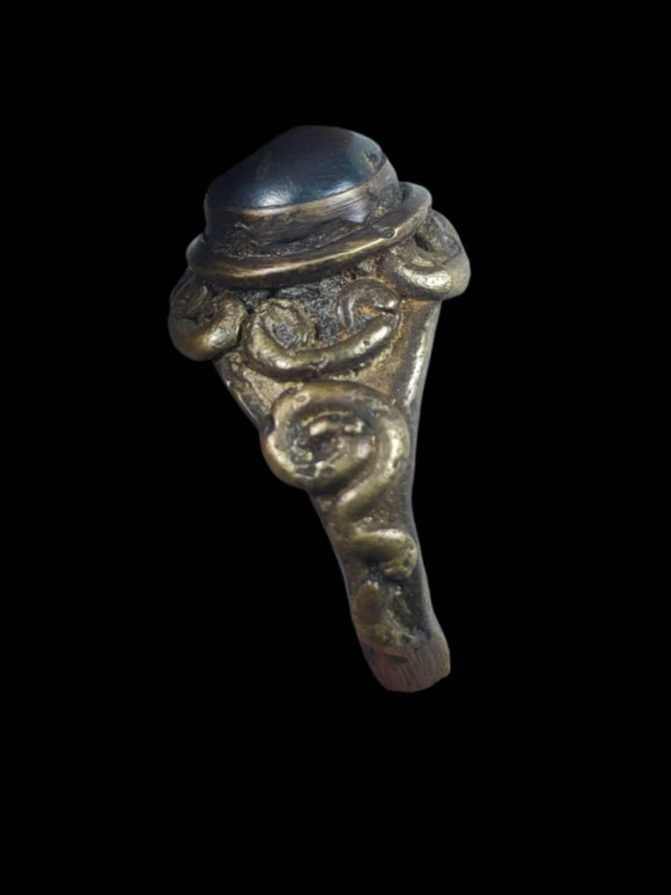 แหวนพิรอดหัวเมฆพัตร เนื้อทองผสมหล่อโบราณ (หลวงพ่ออิ่ม วัดหัวเขา จ.สุพรรณบุรี ปี 2475 ขนาด 2 cm.สภาพเก็บเก่าสวยเดิมสมบูรณ์ ไม่ผ่านการใช้