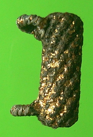 ตะกรุดพิสมรสองห่วง ปิดทอง ถักเชือกไนลอน ตามแบบ เกจิสายนครปฐม เก่าม่ทราบที่ ขนาดยาว 2 ซม. |