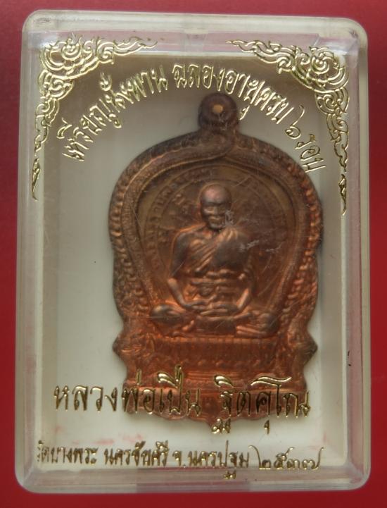 เหรียญนั่งพาน 6 รอบ หลวงพ่อเปิ่น วัดบางพระ ปี 2537 |