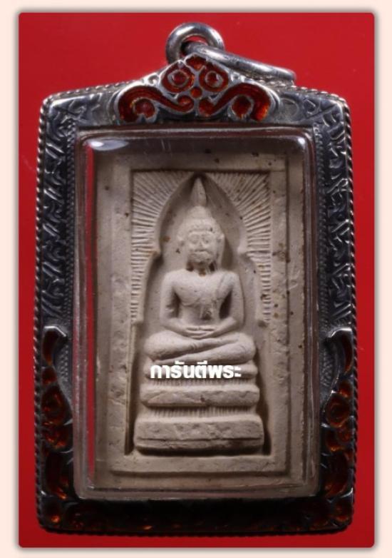 พระสมเด็จแหวกม่าน ย้อนยุค ปี 39 หลวงพ่อกวย วัดโฆสิตาราม หลังมีตราปั๊ม พร้อมกรอบเงินลงยา บัตรG
