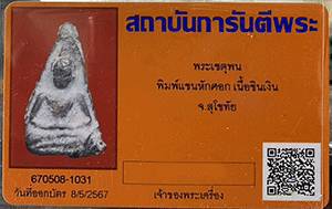 พระเชตุพน แขนหักศอก เนื้อชินเงิน จังหวัดสุโขทัย พร้อมบัตร