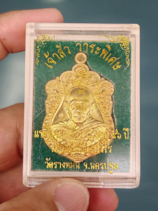 หลวงปู่แผ้ว เหรียญเจ้าสัว เนื้อทองฝาบาตร เลข 4167 พร้อมกล่องครับ |