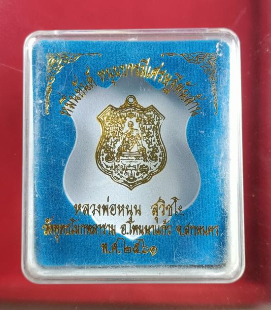 เหรียญหมื่นยันต์ หนุนบารมี เศรษฐีพันล้าน หลวงพ่อหนุน วัดพุทธโมกพลาราม ปี 61 เนื้อตะกั่วลองพิมพ์ หลังเรียบ แจกกรรมการ (สร้าง 19 เหรียญ) หมายเลข 16 |