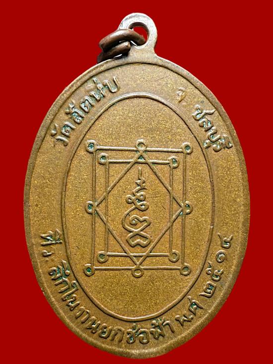 เหรียญหลวงพ่ออี๋ ที่ระลึกงานยกช่อฟ้า เนื้อทองแดง วัดสัตหีบ ปี 2514 |