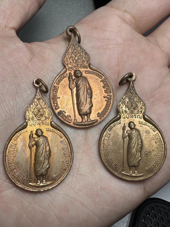 เหรียญหลวงปู่แหวน สุจิณโณ วัดดอยแม่ปั๋ง ยืนถือไม้เท้า 3 เหรียญ |