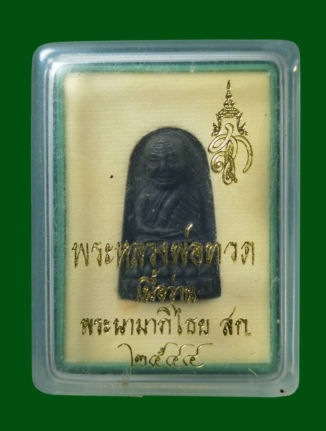 หลวงปู่ทวด หลังพระปรมาภิไธย สก. วัดห้วยมงคล พิมพ์พระรอด ปี 2544 กล่องเดิม |