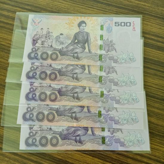 จำนวน 5 ฉบับ ธนบัตร 500 บาท พระพันปี สวยๆครับ เลขเรียงครับ