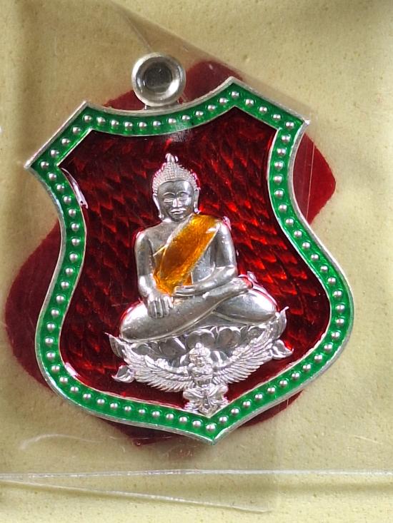 หลวงพ่อสำเร็จศักดิ์สิทธิ์ รุ่นสมปรารถนา กองบัญชาการตำรวจสันติบาล ปี 67 เนื้อเงินลงยาแดง สวยงามกล่องเดิมครับ |