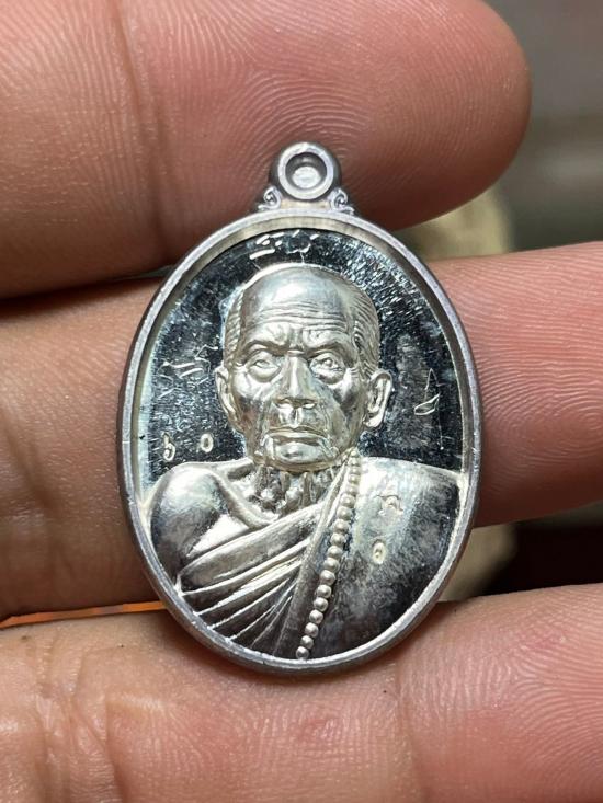 เหรียญรุ่นแรก (ตอกเลข 1 ย้อนยุค ว.จ.) เนื้อเงิน No.60 มีจาร์ รุ่นหัวใจเศรษฐี จำนวนการสร้าง199เหรียญ หลวงปู่หมุน วัดบ้านจาน ศรีสะเกษ |