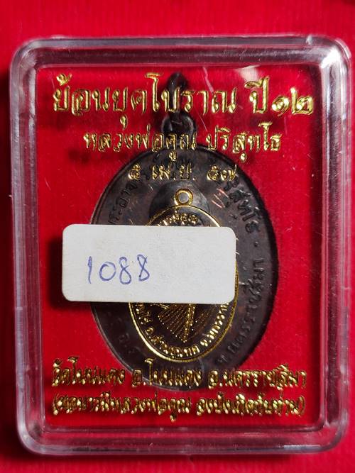 เหรียญย้อนยุคโบราณ ปี 12 หลวงพ่อคูณ ปริสุทโธ ออกวัดบ้านไร่ ปี 57 เนื้อ ทองแดงรมดำ หมายเลข 1088 มีจาร เคาะเดียวแดง |