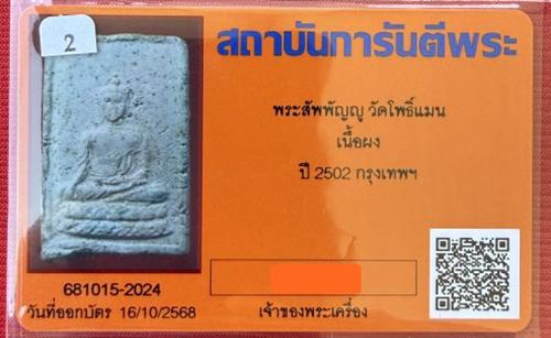 พร้อมบัตรรับรองพระแท้ |