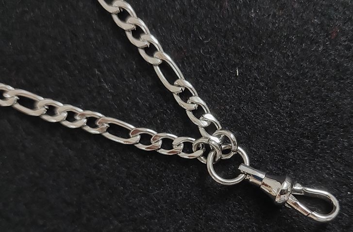 สร้อยสแตนเลส ลายฟิกาโร่ ยาว 26 นื้ว พร้อมสปริงก้ามปูสแตนเลสหมุนได้ ขนาดสร้อยกว้าง 5 มม. หนา 1.5 มม. |
