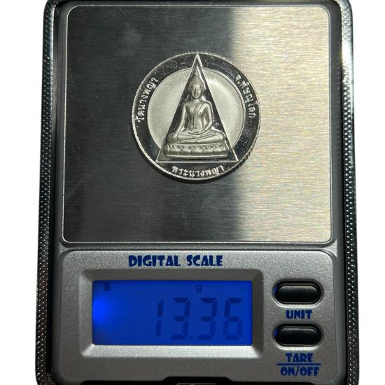 เหรียญนางพญา เนื้อเงิน "รุ่นประวัติศาสตร์ ฉลองสิริราชสมบัติ ครบ 50 ปี วัดนางพญา จ.พิษณุโลก ปี 2539 นน โดยประมาณ 13.36 กรัม |