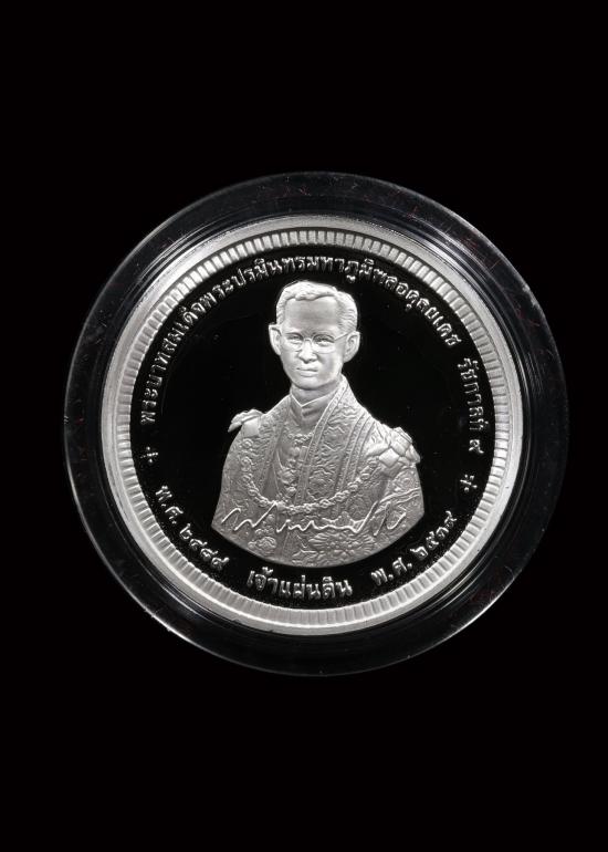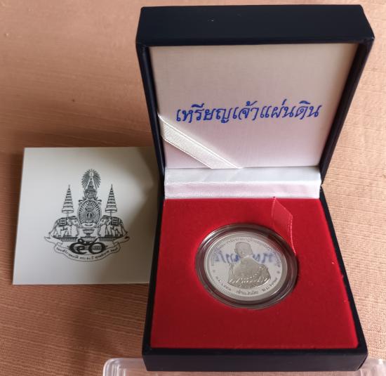 เหรียญเจ้าแผ่นดิน ในหลวงร.9 ทรงครองสิริราชสมบัติครบ 50ปี ปี2539 (((เนื้อเงิน ขัดเงาสามมิติ))) สวย ไม่ผ่านใช้ กล่อง+ใบ