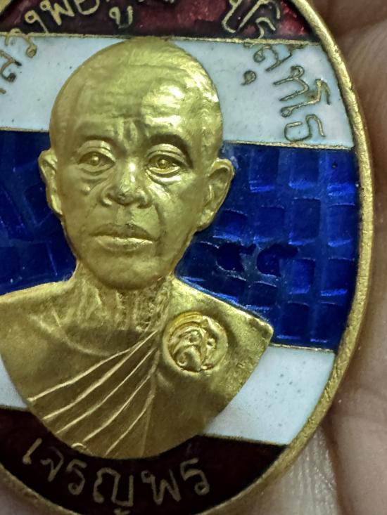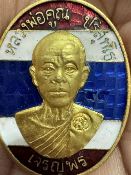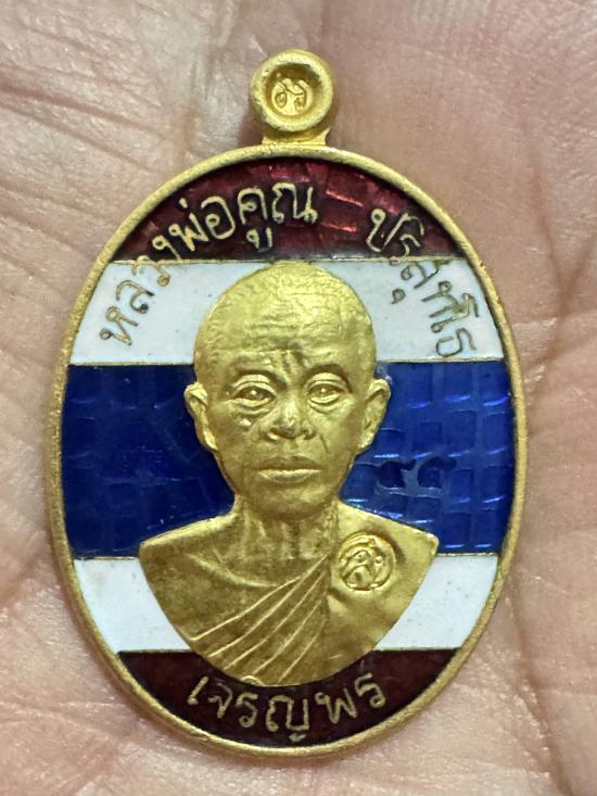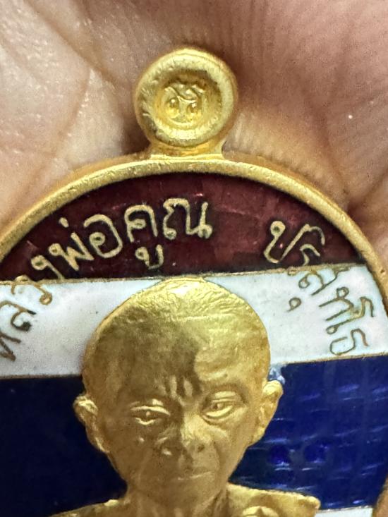 เหรียญเจริญพรล่าง หลวงพ่อคูณ วัดบ้านไร่ เนื้อกะไหล่ทองลงยาลายธงชาติหน้ากากทองคำแท้ หมายเลข 45 ปี 2557