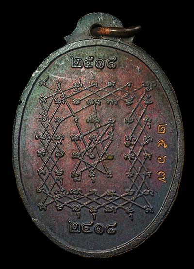 ๒) เนื้อรมดำ จะตอกเลขไทยที่ด้านหลังเหรียญ ข้างยันต์เกราะเพชร