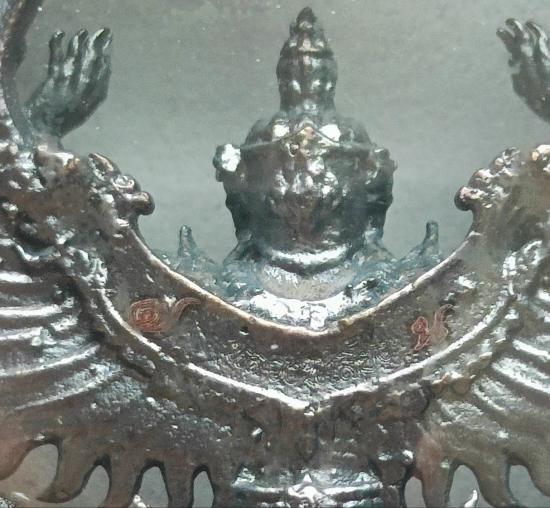 วัดใจเคาะเดียวแดงจ้า พญาครุฑ พระอาจารย์เลี้ยง วัดจอมเกษ ครุฑหล่อนวะปัดทองคำแท้ หมายเลข7 เลี่ยมกรอบไม้มงคล เคาะเดียวแดงจ้า |