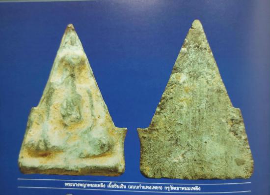 ชื่อพระเครื่อง วัดใจ พระนางพญาพนมเพลิง (แบบกำแพงเพชร) กรุวัดเขาพนมเพลิง เนื้อชินเงิน จ.สุโขทัย
