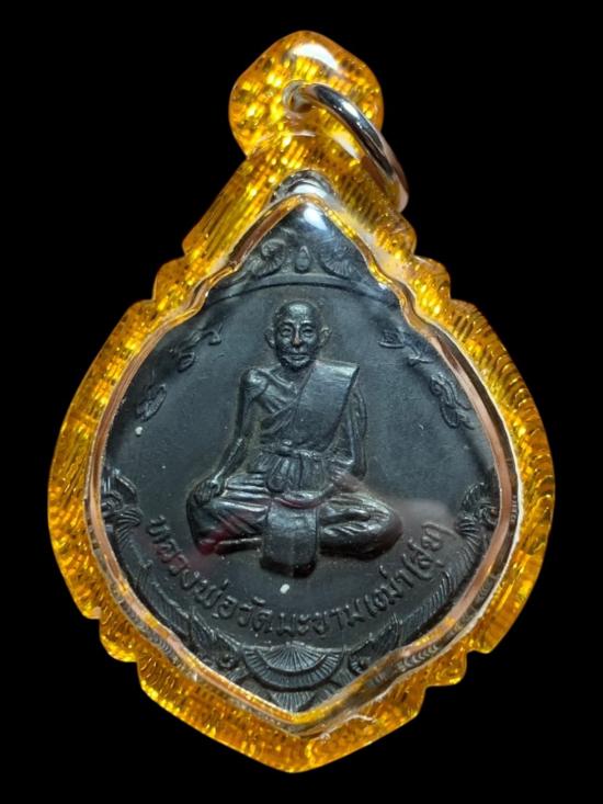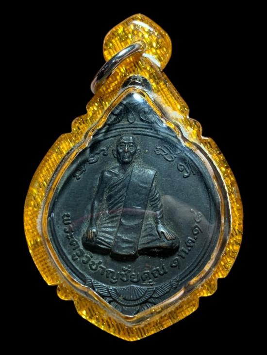 เหรียญหลวงปู่ศุข วัดปากคลองมะขามเฒ่า จ.ชัยนาท หลังพระครูวิชาญชัยคุณ (หลวงพ่อสำราญ) ปี 2518 เนื้อทองแดงรมดำ |