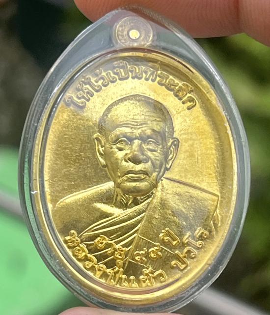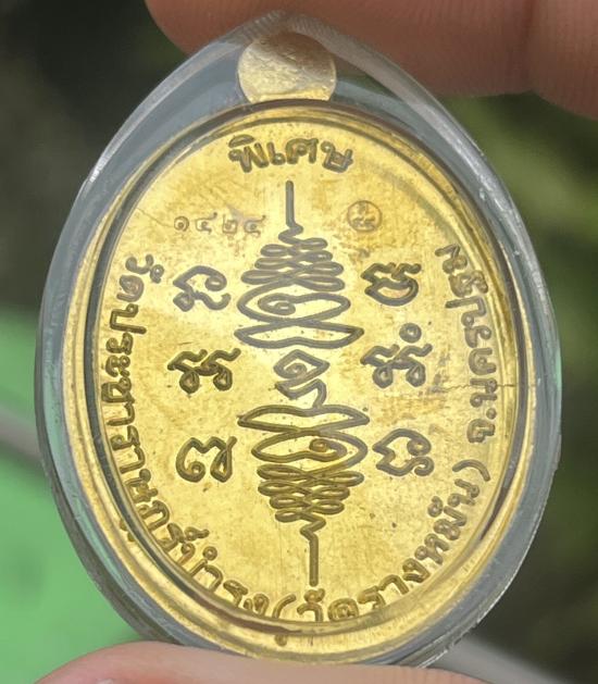 หลวงปู่แผ้ว ยันต์สวน99 เนื้อฝาบารต เลข๑๔๒๔พร้อมเลี่ยมเก็บผิว