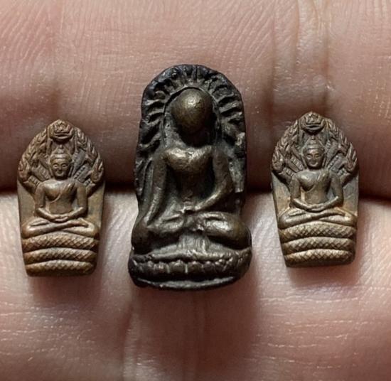 ปรกใบมะขาม 2 องค์ + พระรอดดวงดี เนื้อโลหะ หลวงปู่ดวงดี วัดท่าจำปี |