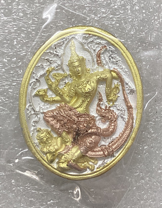 เหรียญหล่อ พระนารายณ์ อนันตทรัพย์ เทวสถานหอพระนารายณ์ จ.นครศรีธรรมราช เนื้ออนันตโชคบรอนซ์สัมฤทธิ์ ชุบสามกษัตริย์ กล่องเดิม |