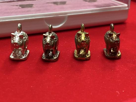 หมูมหาปราบรุ่น4 ชุดกรรมการ หลวงพ่อสาคร วัดหนองกรับ จัดสร้างปี 2555 No.352 จัดสร้างน้อยมากเพียงแค่ 555 ชุดเท่านั้น สวยเดิมทุกตัว ชุดนี้ประกอบด้วยหมู 4 ตัว 4 เนื้อ ดังนี้ 1.เนื้อเงิน 1 ตัว
