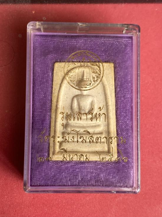 เคาะเดียว) สมเด็จวัดระฆังฯรุ่นเสาร์ห้า พิมพ์ใหญ่ เกศทะลุซุ้ม ปี 2536 สภาพสวยพร้อมกล่องเดิม |