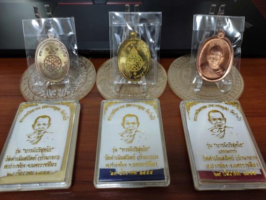 1.รุ่น บารมีปริสุทโธ ปี 2555 (จัดสร้างโดย วัดบ้านกอก ) เนื้อทองแดงผิวไฟ ไม่ตัดปีก หลังแบบ โค๊ด ๙ รอบ หมายเลข 151