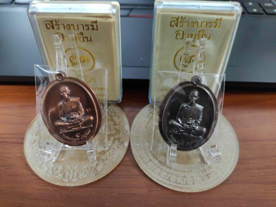 1.สร้างบารมีอายุยืนเนื้อทองแดงรมดำ หลังเรียบ ไม่ตัดปีก หมายเลข ๗๓๒