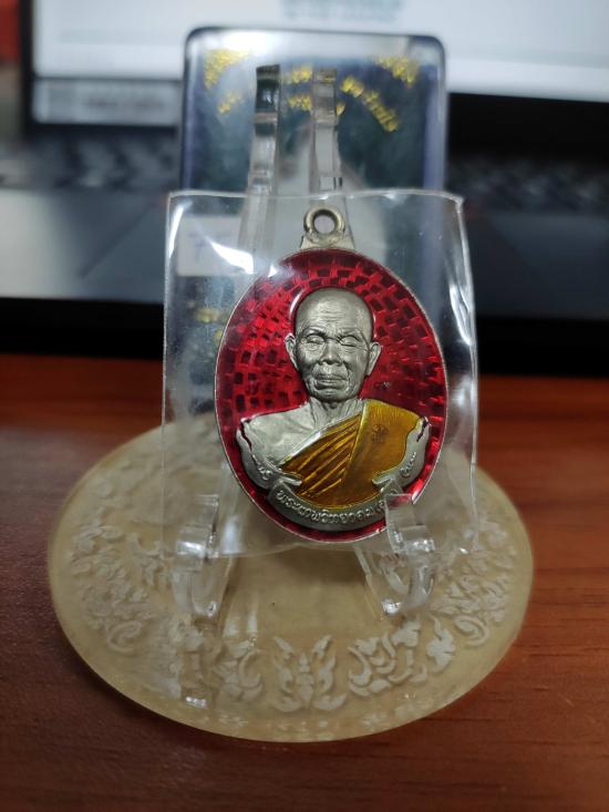 600 เคาะเดียว เหรียญห่วงเชื่อม"รุ่นแรก" หลวงพ่อคูณ เนื้ออาปาก้าลงยาขุ้ยพื้นสีแดง(มีจารหลัง) เบอร์ 75 พร้อมกล่องเดิม