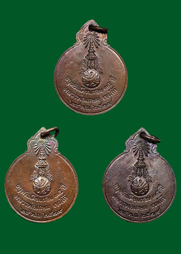 เหรียญหลวงพ่อเกษมหลังภปร. อนุสรณ์ครบรอบ 75 ปี ปี 2529 เนื้อทองแดง(ชุด 3 เหรียญ)