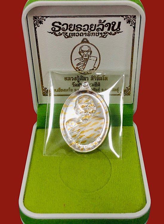 หลวงปู่มหาศิลา รวยรวยล้าน เนื้อเงินพรายทอง หลังยันต์ผิวกระจก จมูกโด่งเลข467กล่องครบคัดสวยๆ ราาจอง3,499.$พระสวยน่าเก็บ