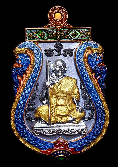 มาแรง 1ใน 90 เหรียญเสมาพญาเสืออุดมทรัพย์ พระอาจารย์ประสูติ (หลวงพ่อประสูติ) วัดในเตา ตรัง เนื้อทองแดงรมดำหน้ากากองค์ชุบเงินหน้ากากขอบทองแดงผิวไฟเพ้นท์ขอบพญานาค จีวรทอง เลขสวยๆNO.41 สวยมากครับ |