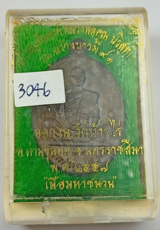เหรียญหลวงพ่อคูณ รุ่น"สร้างบารมี91" ออกวัดบ้านไร่ ปี 57 เนื้อมหาชนวน (มีจาร) เบอร์ 3046 พร้อมกล่องเดิมครับ