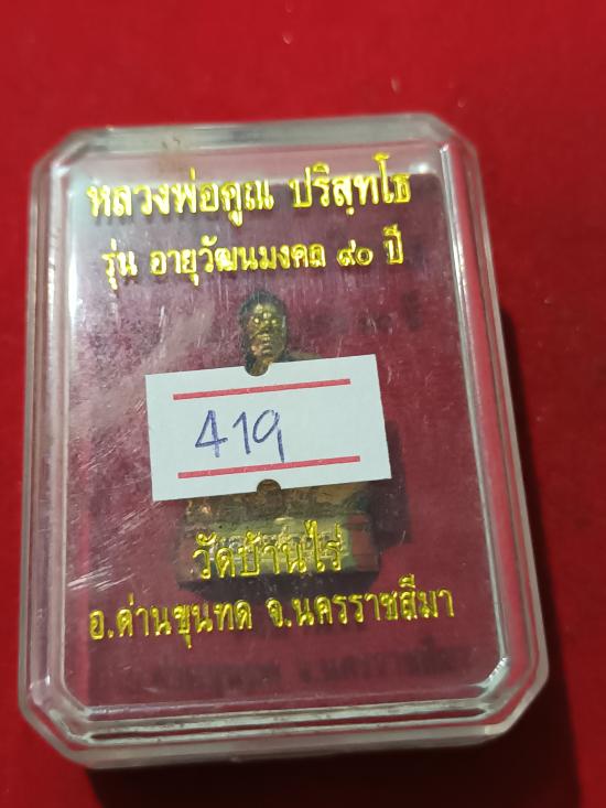 รูปหล่ออายุวัฒนมงคล90 ปี ก้นลายมือ หลวงพ่อคูณ เนื้อทองทิพย์พร้อมกล่องเดิม No.419 |