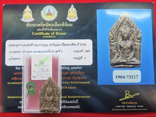 พระขุนแผนกุมารทองสมบัติ หลวงพ่อพูล วัดไผ่ล้อม เนื้อผงไม้ตะเคียน ปี2548 ติดรางวัลที่3 งานสมาคมพระเครื่องพระบูชาไทย |