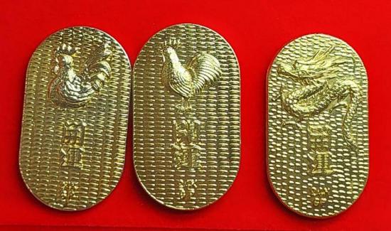 ***วัดใจ3ชิ้น***เหรียญโชคดี Japan ลายนักษัตร งานนอก 24k GP ชุบทองคำ 99% ขนาด 3.5 X 2 CM. |