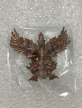 เคาะเดียวแดง 100 พญาครุฑทรงฤทธิ์ ชนะมาร วัดครุฑธาราม พระนครศรีอยุธยา พิมพ์เล็ก สูง 3.2 ซ.ม. เนื้อทองแดงขัดยาดำ (แจกในพิธี) |