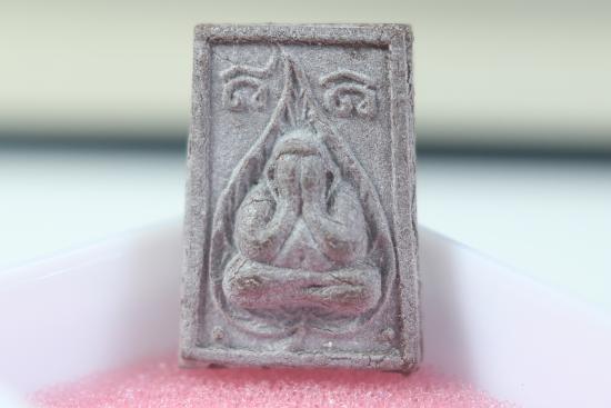 เป็นพระเนื้อผงสีน้ำตาล-เทา ด้านหน้าเป็นรูปพระปิดตา ประทับนั่งอยู่บนรูปใบโพธิ์ ภายใต้กรอบสี่เหลี่ยมผืนผ้า ส่วนด้านหลังจะมีเขียนอยู่ด้วยกัน 2แบบ