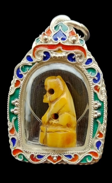 เสืองาแกะเลี่ยมเงินลงยาหลวงพ่อไพบูลย์ หายากสร้างน้อย |