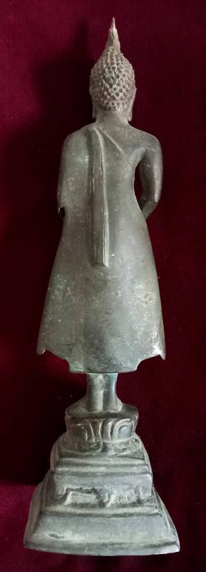 พระบูชา ปางถวายเนตร ขนาดสูงประมาณ 12 นิ้ว ตามุก ประทับยืนบน ฐาน 4 เหลี่ยม มีบัวคว่ำบัวหงายบนโต๊ะขาสิงห์ หล่อสองถอดแต่เชื่อมติดกัน เนื้อทองเหลืองเก่าคร่ำ เกิดสนิมหยกขึ้นประปรายบริเวณพระพักตร์และชายจีวร ใต้ฐานเห็นเศษดินฝรั่ง สภาพเก่าหลายสิบปีสวยตามรูป ส่งฟรีทั่วไทย รับประกันตามกฎครับ |