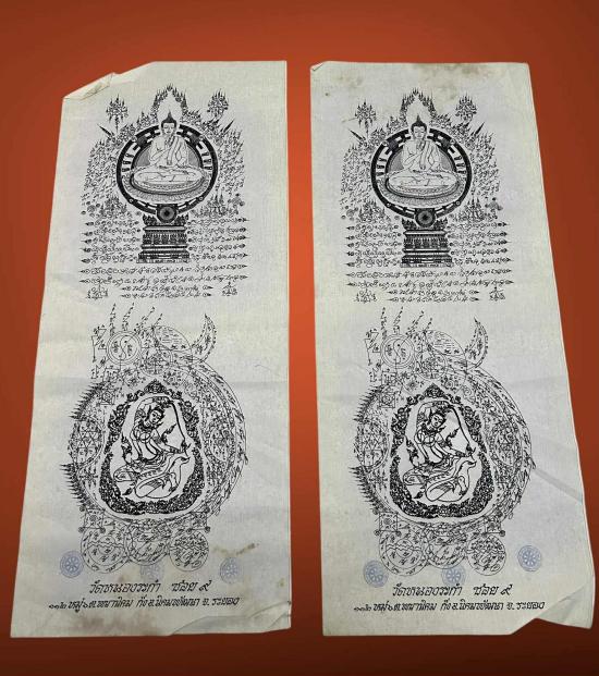 จัดไป....ผ้ายันต์พระพุทธธรรมจักรทิพย์ญาณไตรโลก วัดหนองระกำ อาจารย์หม่อมเขียนออกแบบยันต์ หลวงปู่ละมัยปลุกเสก ขนาด 112x47 ซ.ม. ผืนใหญ่ ชุดที่ 3 |
