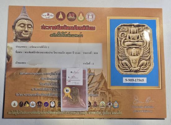 พระพิมพ์นักษัตร หลวงพ่อปาน วัดบางนมโค อยุธยา ปี 2548 สภาพสวยพร้อมใบประกาศ |