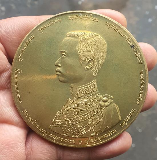 เหรียญรัชกาลที่ 5 ที่ระลึก"สมโภชกรุงเทพฯ 100ปี" เส้นผ่านศูนย์กลาง 71มม. เป็นเหรียญขนาดใหญ่สุดในรัชสมัยรัชกาลที่5 เนื้อทองเดงกะหลั่ยทองด้านหน้าพระบรมรูปทรงผินพระพักตร์เบื้องซ้าย ด้านหลังภาพวัดพระแก้ว ม |